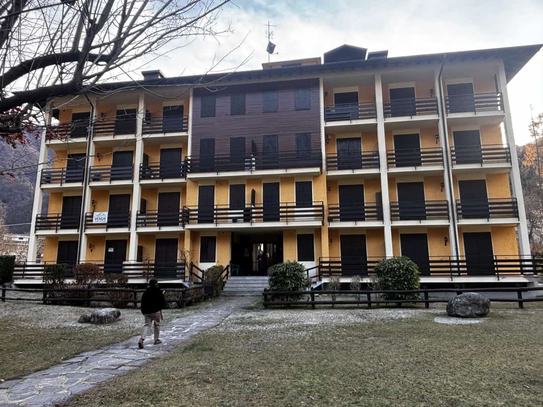 1) Appartamento al piano terreno, mq.48 composto da: soggiorno con camino, cucina, camera, bagno, ampio balcone e giardino di circa mq.100 ad uso esclusivo. Arredato. Cantina. € 120.000,00 trattabili