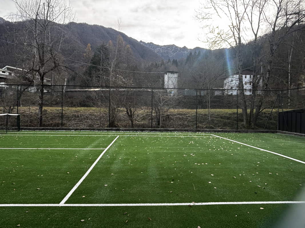 Giardino comune, area giochi, barbecue e campo da tennis.