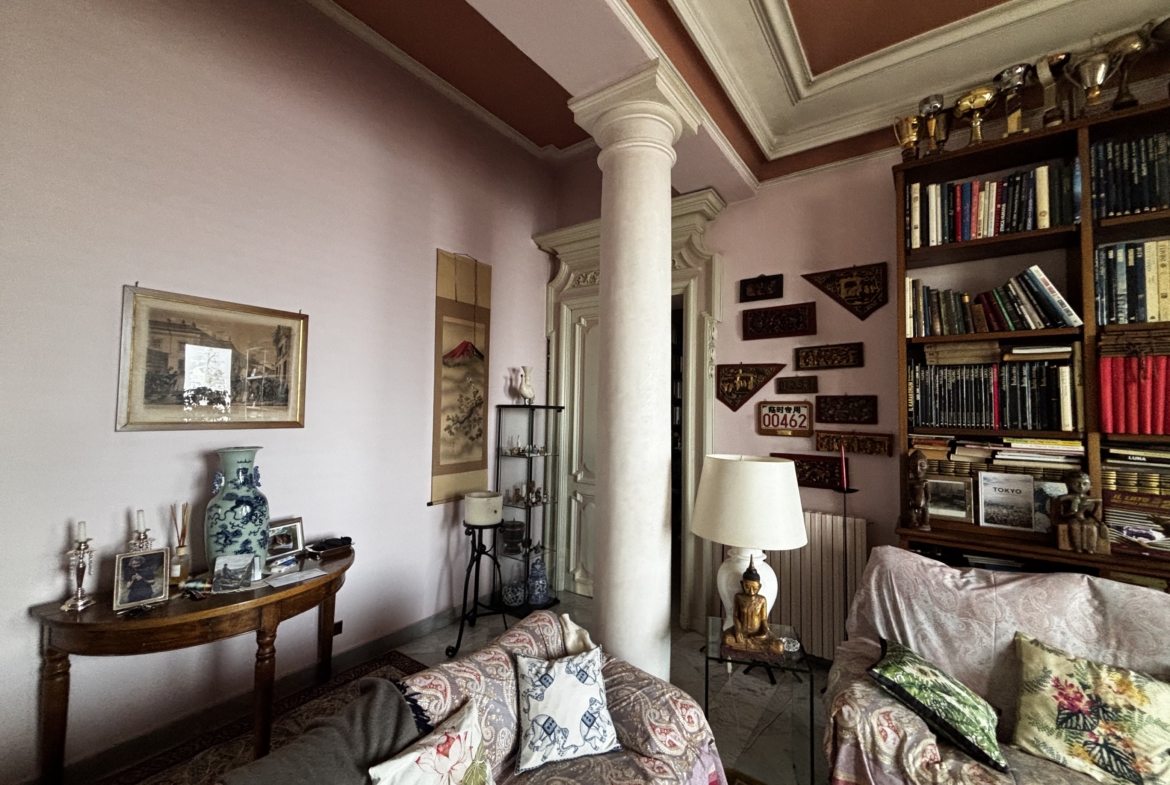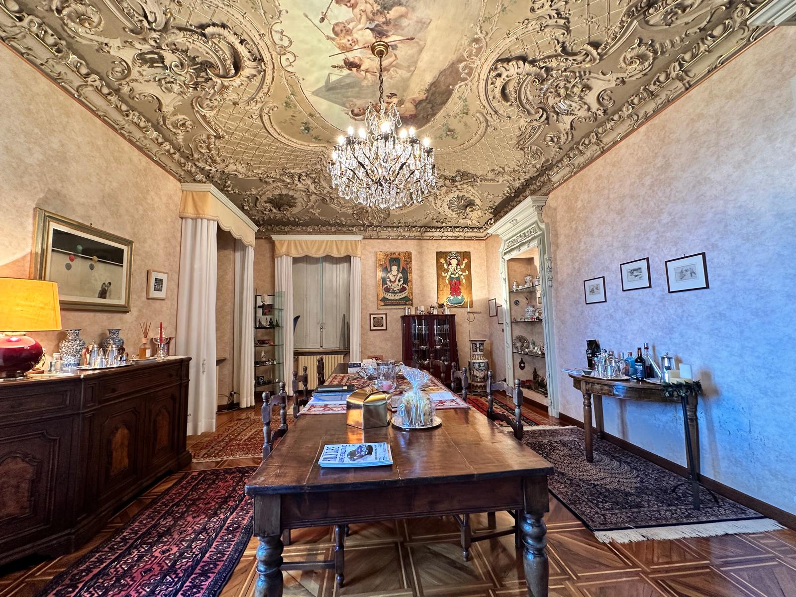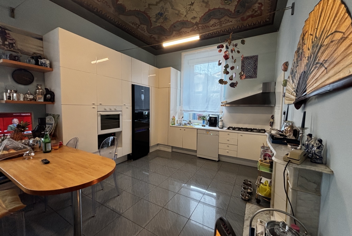 Al piano seminterrato, collegato internamente tramite ascensore privato, si trovano funzionali e spaziosi locali di servizio: guardaroba/stireria, lavanderia, taverna, cantina e tre box auto, oltre a comodi posti auto esterni. L’immobile conserva intatto il fascino dell’epoca grazie a soffitti affrescati, infissi interni originali perfettamente conservati e una porzione di giardino esclusivo, che garantisce privacy e riservatezza assolute. Una residenza unica, ideale per chi ricerca prestigio, storia e comfort, in un contesto esclusivo e senza tempo.