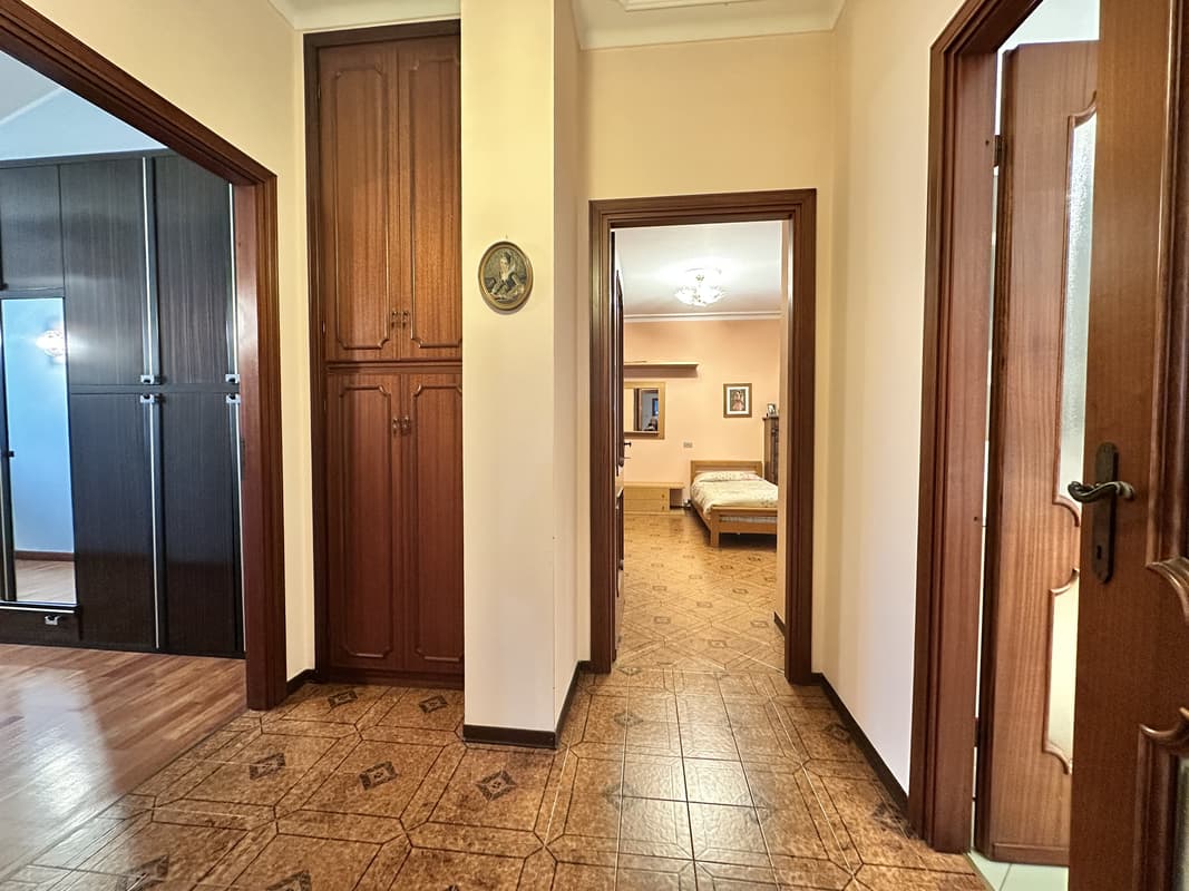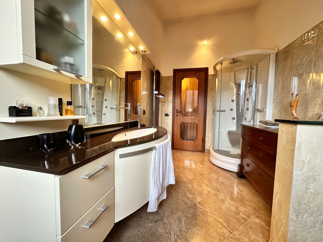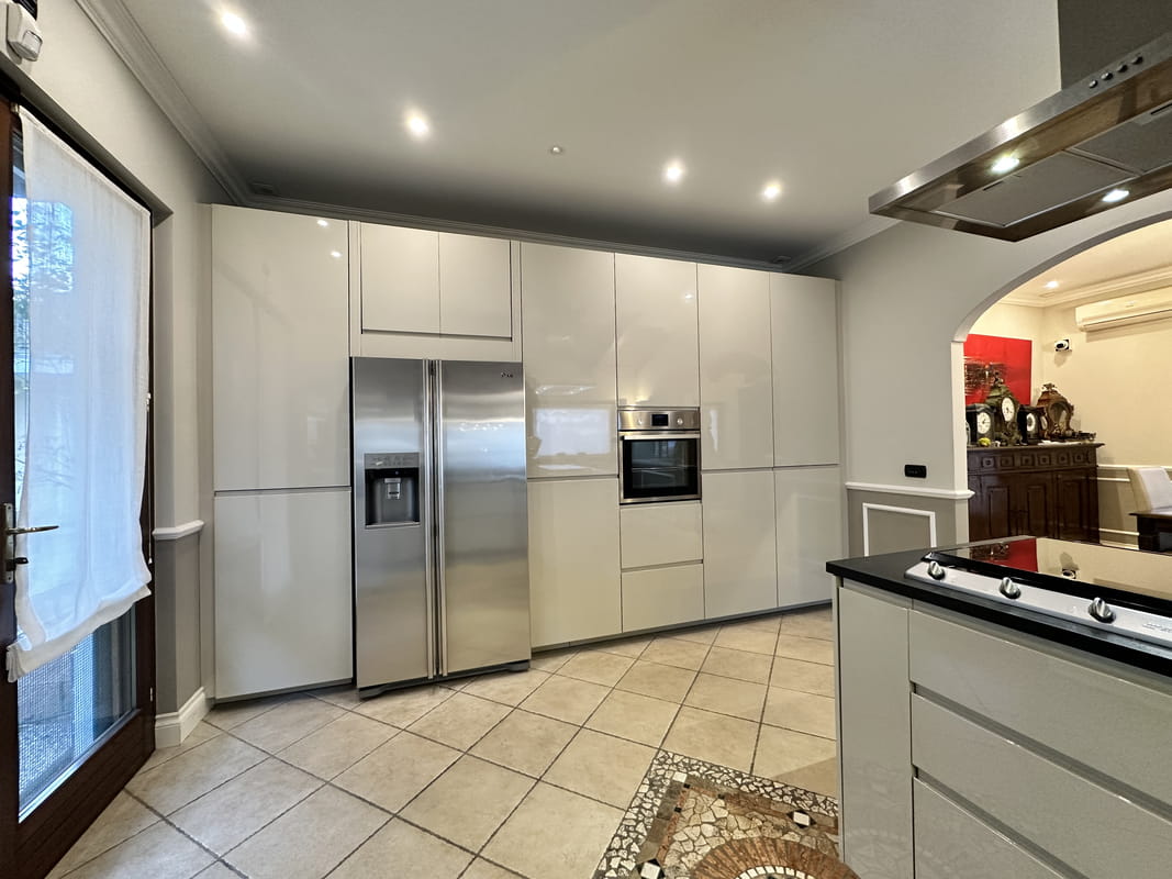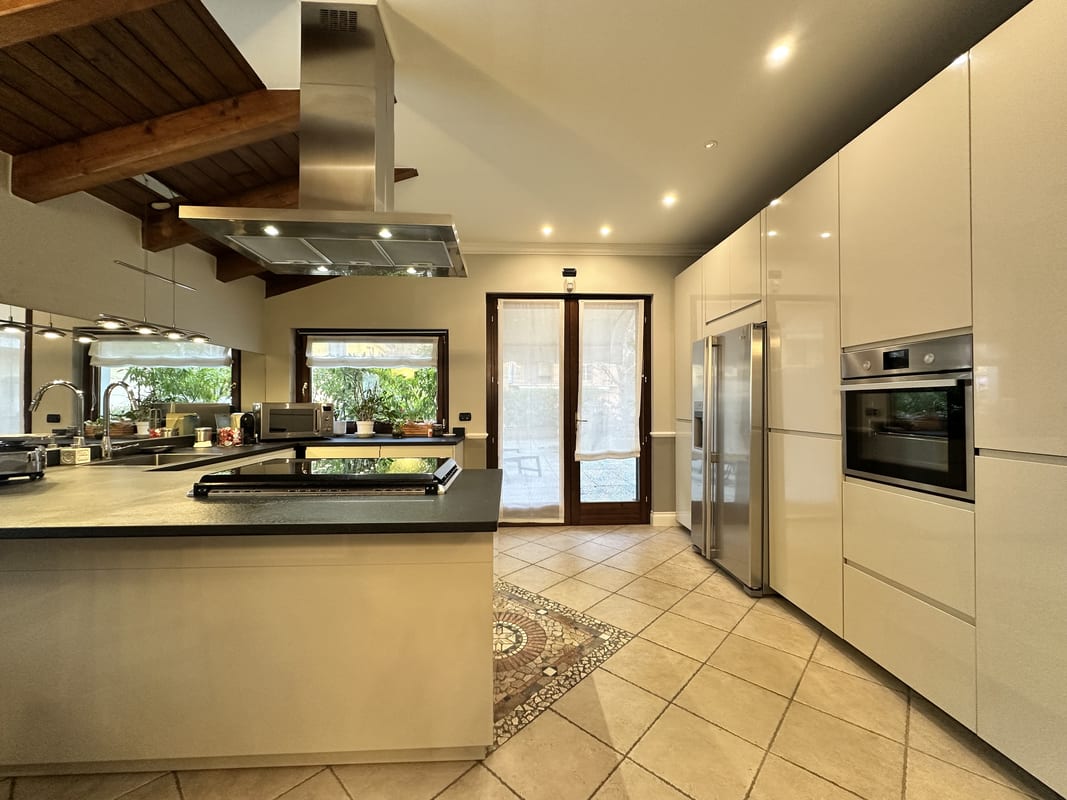 In una posizione centrale ma al tempo stesso tranquilla e splendidamente soleggiata, proponiamo una prestigiosa villa indipendente, ideale per chi cerca ampi spazi, privacy e comfort. La proprietà si presenta in ottimo stato ed è valorizzata da un grande cortile con sei box auto, un curato giardino con piscina e un suggestivo laghetto, perfetti per momenti di relax all’aria aperta. Al piano terreno troviamo una superficie di circa 700 mq, attualmente utilizzata come uffici e magazzino: ambienti versatili che si prestano sia ad attività professionali sia a progetti di riorganizzazione residenziale o ricettiva. Salendo al primo piano, si accede a un appartamento rifinitissimo di 200 mq, composto da un elegante salone doppio, un’ampia cucina arredata, sala da pranzo, tre camere, doppi servizi e un terrazzo molto spazioso. Completano il livello due ulteriori vani con servizio indipendente, perfetti come studio, area ospiti o locale hobby. Il comfort è garantito da riscaldamento autonomo a pavimento a metano, camino, condizionatore e climatizzatore. Il secondo piano ospita un secondo appartamento di 150 mq, anch’esso dotato di ingresso indipendente, composto da soggiorno, cucina arredata, due camere, doppi servizi e un ampio terrazzo. Anche qui sono presenti riscaldamento autonomo e climatizzazione. La villa è inoltre dotata di doppi vetri e impianti completamente a norma, caratteristiche che ne esaltano qualità, sicurezza e comfort abitativo. Una soluzione unica nel suo genere, perfetta per chi desidera coniugare abitazione, lavoro e spazi esterni di pregio in un’unica esclusiva proprietà.